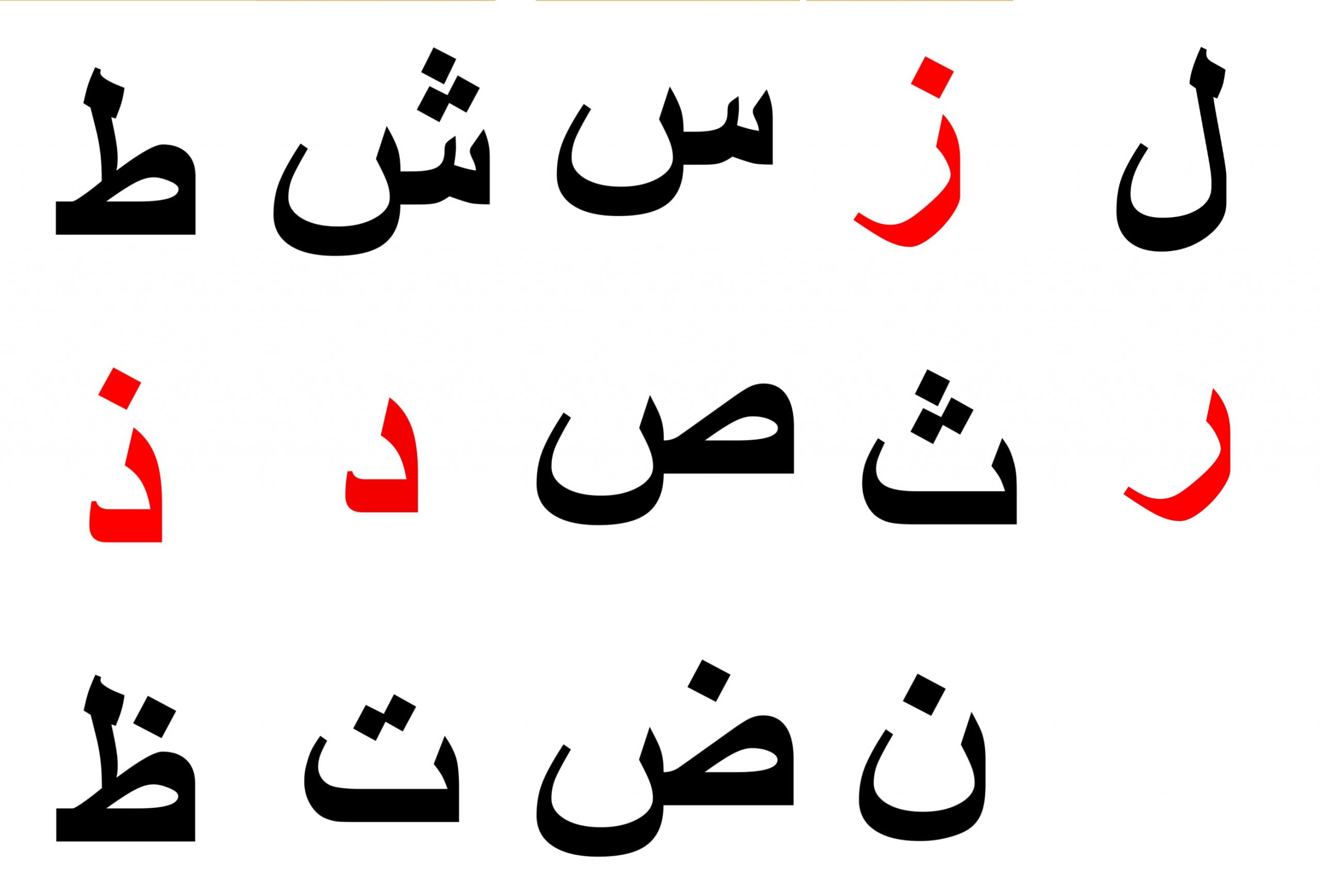 Die Leseregel, die beim Sonnenbuchstaben Shîn gilt, werden auf alle Sonnenbuchstaben angewandt, die im Folgenden aufgelistet sind. Es handelt sich um 14 Sonnenbuchstaben: